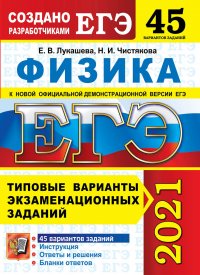 | Полное название книги | Н. И. Чистякова, Е. В. Лукашева ЕГЭ 2021. Физика. 45 вариантов. Типовые варианты экзаменационных заданий |
