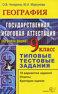 | Полное название книги | Ю. А. Моргунова, О. В. Чичерина ЕГЭ. География. 9 класс. Типовые тестовые задания |