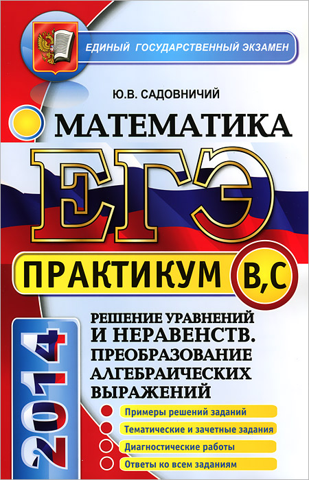 | Полное название книги | Ю. В. Садовничий ЕГЭ. Практикум по математике. Решение уравнений и неравенств. Преобразование алгебраических выражений |