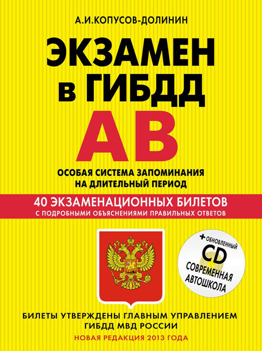 | Полное название книги | А. И. Копусов-Долинин Экзамен в ГИБДД. Категории А, В. Особая система запоминания (новая редакция 2013 года) (+CD) |
