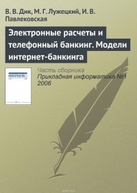 | Полное название книги | М. Г. Лужецкий, Павлековская И. В., В. В. Дик Электронные расчеты и телефонный банкинг. Модели интернет-банкинга |