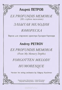 | Полное название книги | Андрей Петров Ex profundis memoriae (Из глубин памяти). Забытая мелодия. Юмореска. Версии для струнного оркестра Григория Корчмара |
