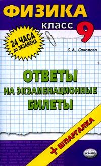 | Полное название книги | С. А. Соколова Физика: Ответы на экзаменационные билеты: 9 класс: Учебное пособие + шпаргалка |