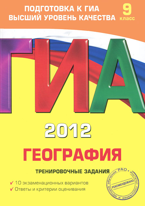 | Полное название книги | Ю. А. Соловьева ГИА 2012. География. Тренировочные задания. 9 класс |