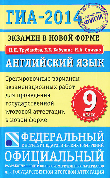 | Полное название книги | Н. Н. Трубанева, Н. А. Спичко, Е. Е. Бабушис ГИА-2014. Английский язык. Экзамен в новой форме. Тренировочные варианты экзаменационных работ |