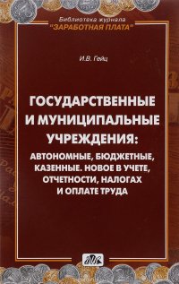 | Полное название книги | И. В. Гейц Государственные и муниципальные учреждения. Автономные, бюджетные, казенные. Новое в учете, отчетности, налогах и оплате труда |