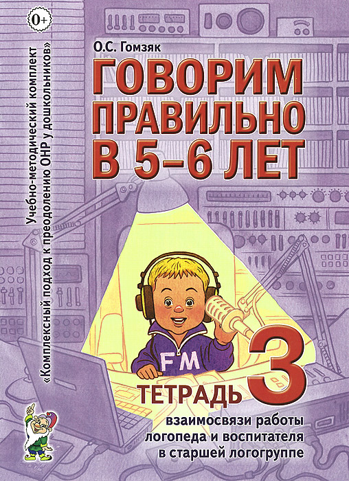 | Полное название книги | О. С. Гомзяк Говорим правильно в 5-6 лет. Тетрадь 3. Взаимосвязи работы логопеда и воспитателя в старшей логогруппе |