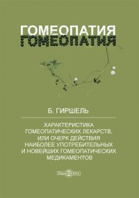 | Полное название книги | Б. Гиршель Характеристика гомеопатических лекарств, или Очерк действия наиболее употребительных и новейших гомеопатических медикаментов |