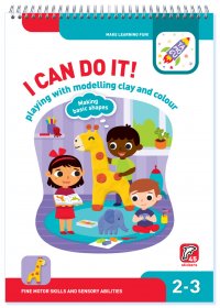 • Fun and engaging storylines • Introduces your child to working with modelling clay, drawing and colouring • Trains fine motor skills • Demonstrates that learning can be fun • 45 reusable stickers • Good quality paper • Convenient, open flat spiral bindingLet’s light a fire in the fireplace! Let’s build a kennel or a snowman! What does your child like doing? Playing is probably what they enjoy the most. This is why we think they will like building bridges out of modelling clay or drawing teeth on an alligator. We wanted to turn each activity in this book into a little adventure for young children. Colouring and making things out of clay are not just fun activities, they are also very useful ones! They help children prepare their hands for writing and will also improve their language skills. This activity book is designed for children who are 2 to 3 years old, but the tasks should also be interesting for older children. Inside, you’ll also find 45 laminated reusable stickers, which we know your child will love. Our activity books in this series are printed on carefully chosen thick paper, making them easy for children to use. Это и многое другое вы найдете в книге I Can Do It! Playing with Modelling Clay and Colour. Age 2-3 (Я могу лепить и рисовать! Картинки из пластилина. 2-3. Издание на английском языке) (Natalya Lyalina, Irina Lyalina)