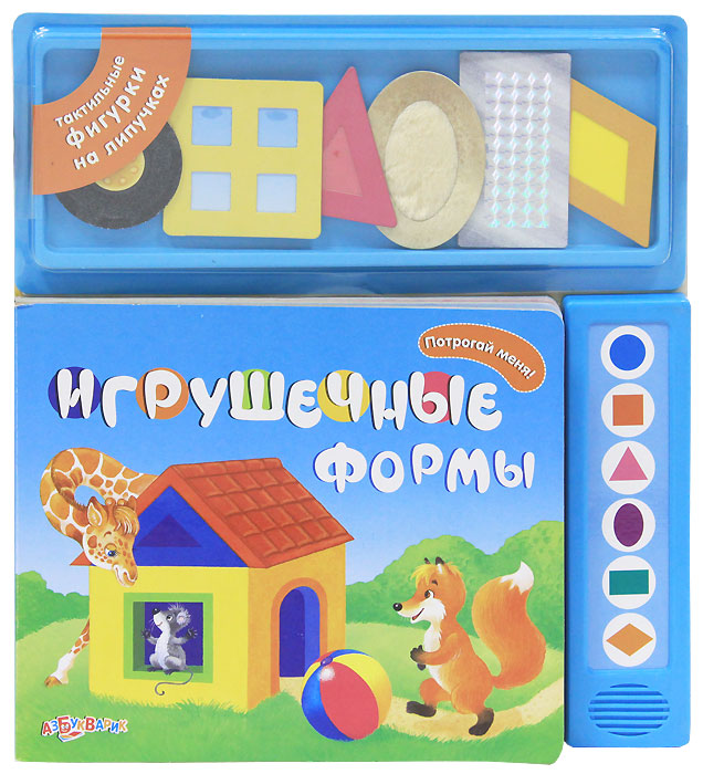 Малыш! Изучай формы вместе с любимыми игрушками! Подбери для мишки овальный плюшевый животик, для поезда - блестящий прямоугольный вагончик. А если нажмешь на кнопочки, услышишь названия форм.