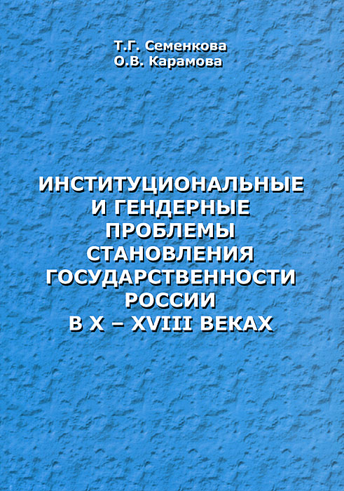 | Полное название книги | О. В. Карамова, Т. Г. Семенкова Институциональные и гендерные проблемы становления государственности России в X-XVIII веках |
