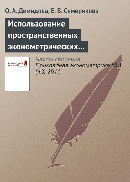 | Полное название книги | Ольга Анатольевна Демидова, Елена Вячеславовна Cемерикова Использование пространственных эконометрических моделей при прогнозе регионального уровня безработицы |
