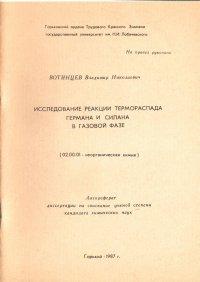 | Полное название книги | В. Вотинцев Исследование реакции термораспада германа и силана в газовой фазе |