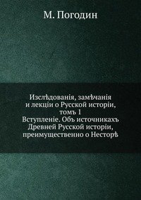 | Полное название книги | М. П. Погодин Исследования, замечания и лекции о Русской историиии |