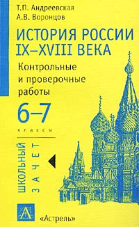 | Полное название книги | А. В. Воронцов, Т. П. Андреевская История России IX - XVIII века. 6 - 7 классы. Контрольные и проверочные работы |