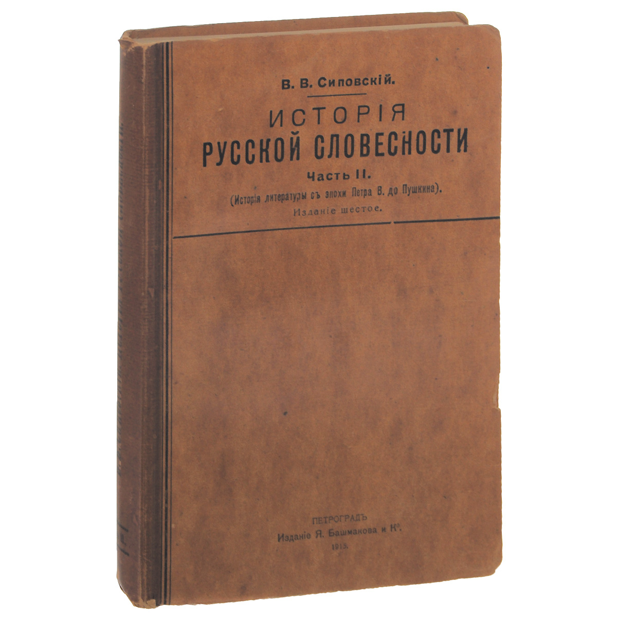 | Полное название книги | В. В. Сиповский История русской словесности. Часть 2. История литературы с эпохи Петра В. До Пушкина |