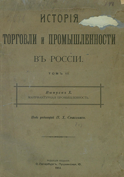 | Полное название книги | Коллектив авторов, История торговли и промышленности в России. Том 3. Мануфактурная промышленность |