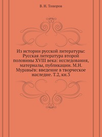 | Полное название книги | В. Н. Топоров Из истории русской литературы: Русская литература второй половины XVIII века: исследования, материалы, публикации. М.Н. Муравьев: введение в творческое наследие. Т.2, кн.3 |
