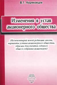| Полное название книги | В. Г. Коряковцев Изменения в устав акционерного общества (Комментарий новой редакции закона, варианты устава акционерного общества, образцы документов годового общего собрания акционеров) |
