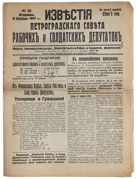 | Полное название книги | Известия Петроградскаго Совета Рабочих и Солдатских Депутатов. № 37, 11 апреля 1917 года |