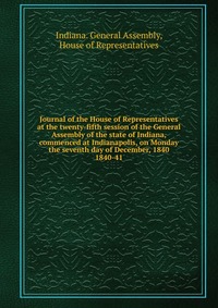 | Полное название книги | Indiana. General Assembly Journal of the House of Representatives at the twenty-fifth session of the General Assembly of the state of Indiana, commenced at Indianapolis, on Monday the seventh day of December, 1840 |