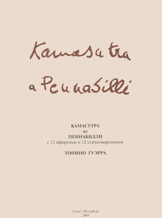 | Полное название книги | Тонино Гуэрра Камасутра из Пеннабилли с 12 офортами и 12 стихотворениями |
