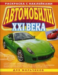 Вашему вниманию предлагается раскраска с наклейками для мальчиков. С помощью нее ребята познакомятся со спортивными машинами, лимузинами, кроссоверами, спецмашинами, микроавтомобилями и другими машинами XXI века.