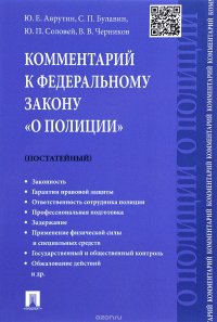 | Полное название книги | С. П. Булавин, Ю. П. Соловей, Ю. Е. Аврутин, В. В. Черников Комментарий к Федеральному закону "О полиции"(Постатейный) |