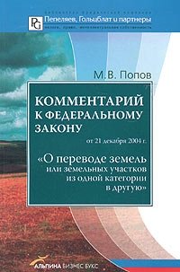 | Полное название книги | М. В. Попов Комментарий к Федеральному закону от 21 декабря 2004 г. "О переводе земель или земельных участков из одной категории в другую" |