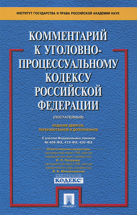 | Полное название книги | ред., Михайловская И.Б, Петрухин И.Л. Комментарий к УПК РФ (постатейный). С учетом ФЗ № 408-ФЗ, 419-ФЗ, 420-ФЗ |