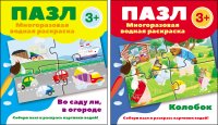 В комплект вошли пазлы-многоразовые водные раскраски: "Во саду ли, в огороде", "Колобок".