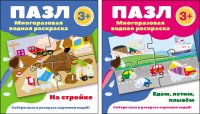 В комплект вошли пазлы-многоразовые водные раскраски: "Едем, летим, плывем", "На стройке".