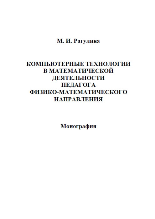 | Полное название книги | М. И. Рагулина Компьютерные технологии в математической деятельности педагога физико-математического направления |