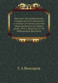 | Полное название книги | С. А. Венгеров Критико-биографический словарь русских писателей и ученых (от начала русской образованности до наших дней). Том 2. Выпуски 22-30. Бабаджанов-Бензенгр |