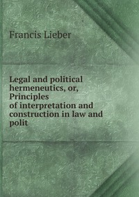 | Полное название книги | Francis Lieber Legal and political hermeneutics, or, Principles of interpretation and construction in law and polit |