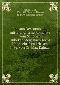 | Полное название книги | Max Kaluza Libeaus Desconus, die mittelenglische Romanze vom Schonen Unbekannten; nach sechs Handschriften kritisch hrsg. von Dr. Max Kaluza |