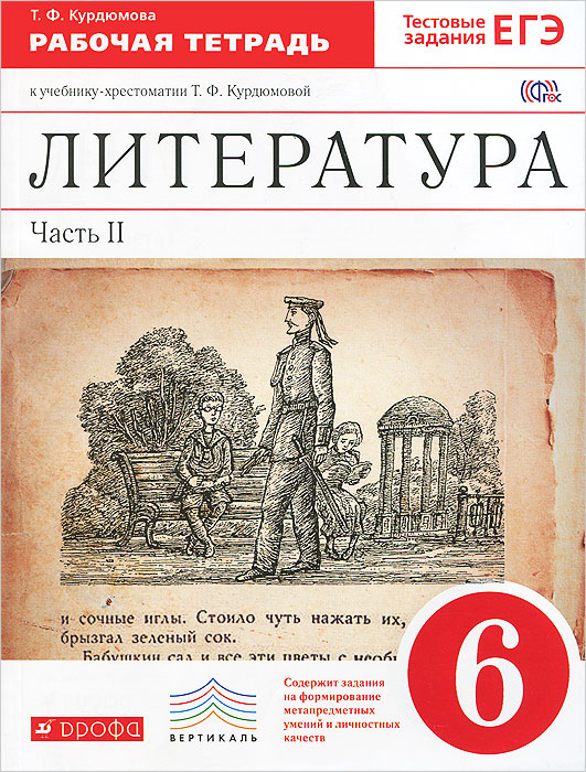 | Полное название книги | Т. Ф. Курдюмова Литература. 6 класс. Рабочая тетрадь. В 2 частях. Часть 1. К учебнику-хрестоматии Т. Ф. Курдюмовой |
