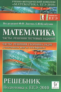 | Полное название книги | Под редакцией Ф. Ф. Лысенко, С. Ю. Кулабухова Математика. Решебник. Часть 1. Решения тестовых заданий. Подготовка к ЕГЭ-2010 |