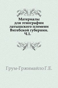 | Полное название книги | Г. Е. Грум-Гржимайло Материалы для этнографии латышского племени Витебской губернии. Ч. 1 |