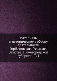 | Полное название книги | Коллектив авторов Материалы к историческому обзору деятельности Горбатовскаго Уезднаго Земства, Нижегородской губернии. Т. 1 |