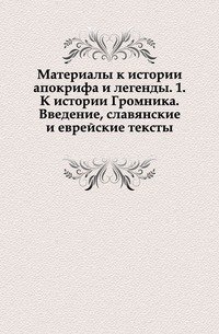 | Полное название книги | Коллектив авторов Материалы к истории апокрифа и легенды. 1. К истории Громника. введение, славянские и еврейские тексты |