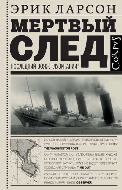 На сайте представлено только описание и выходные данные книги «Мертвый след. Последний вояж «Лузитании» Эрик Ларсон, Анна Асланян». Сайт не является распространителем книги. Сайт не предоставляет возможности купить, читать онлайн или скачать бесплатно книгу «Мертвый след. Последний вояж «Лузитании» Эрик Ларсон, Анна Асланян». Сайт предназначен для лиц старше 18 лет. Если вам не исполнилось 18 лет - незамедлительно покиньте сайт. Оставаясь на сайте вы подтвердаете, что вам исполнилось 18 лет.