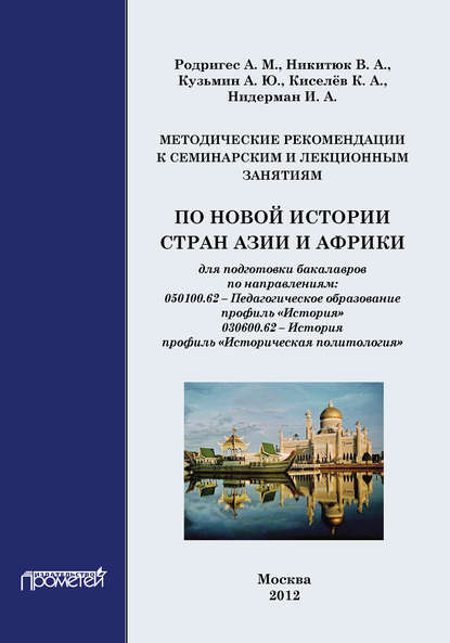 | Полное название книги | Александр Мануэльевич Родригес, Владимир Александрович Никитюк, Александр Юрьевич Кузьмин, Кирилл Александрович Киселёв, Ирина Абрамовна Нидерман Методические рекомендации к семинарским и лекционным занятиям по новой истории стран Азии и Африки |