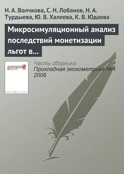 | Полное название книги | С. Н. Лобанов, Н. А. Волчкова, Н. А. Турдыева, Ю. В. Халеева, Ксения Валентиновна Юдаева Микросимуляционный анализ последствий монетизации льгот в России |