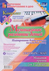 | Полное название книги | А. А. Петухова Музыкальное развитие детей 3-4 лет. Планирование деятельности на каждый месяц. Сентябрь-май: комплект из 36 тематических карт-планов с методическим сопровождением |