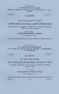 Этнологическая экспедиция в Брянской и Калужской губерниях в 1925-ом и 1926-ом годах. 171 рисунок в тексте. Описание быта, обычаев, приемов народного ремесла. Книга является библиографической редкостью. Это и многое другое вы найдете в книге Народный быт в верховьях Десны и в верховьях Оки. Часть первая (Н. И. Лебедева)