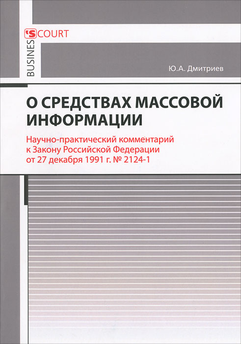| Полное название книги | Ю. А. Дмитриев Научно-практический комментарий к Закону Российской Федерации "О средствах массовой информации" (постатейный) |