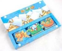 Забавный новогодний подарок для самых маленьких - три книжечки в яркой картонной коробке. На каждой страничке малыш сможет прочитать стихи о предпраздничных хлопотах Деда Мороза, о том, кто помогает ему мастерить подарки, о его верных помощниках - оленях. А необычная вырубка позволит поиграть с книжками после прочтения - ведь их можно соединить друг с другом в паровозик (как пазлы).