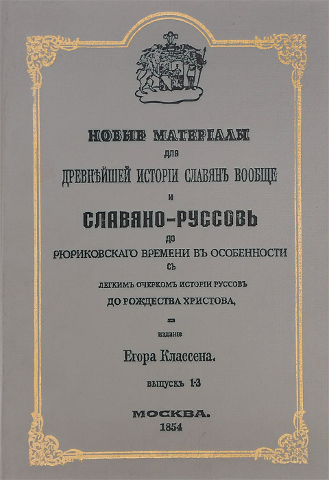 | Полное название книги | Егор Классен Новые материалы для древнейшей истории славян вообще и славяно-руссов до рюриковского времени в особенности, с легким очерком истории руссов до Рождества Христова. Выпуск 1-3 |