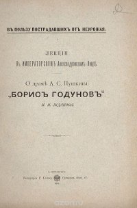 Прижизненное издание. Санкт-Петербург, 1892 год. Типография Р. Голике. Типографская обложка. Сохранность хорошая. В издание вошел текст лекции литературоведа и фольклориста, академика Петербургской академии наук Ивана Николаевича Жданова, посвященной драме А. С. Пушкина "Борис Годунов". Лекция была прочитана в Императорском Александровском лицее в пользу пострадавших от неурожая. Не подлежит вывозу за пределы Российской Федерации. Это и многое другое вы найдете в книге О драме А. С. Пушкина "Борис Годунов" (И. Н. Жданов)